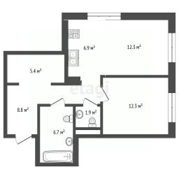 Квартира расположена на 1 этаже 16 этажного дома, площадью 54,2 кв.м., с просторной кухней-гостиной 19 кв.м, санузлом 6,7 кв.м.