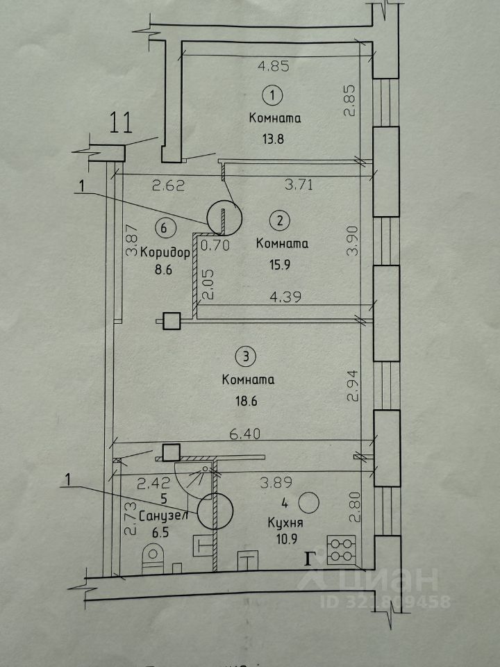 10,9 м²