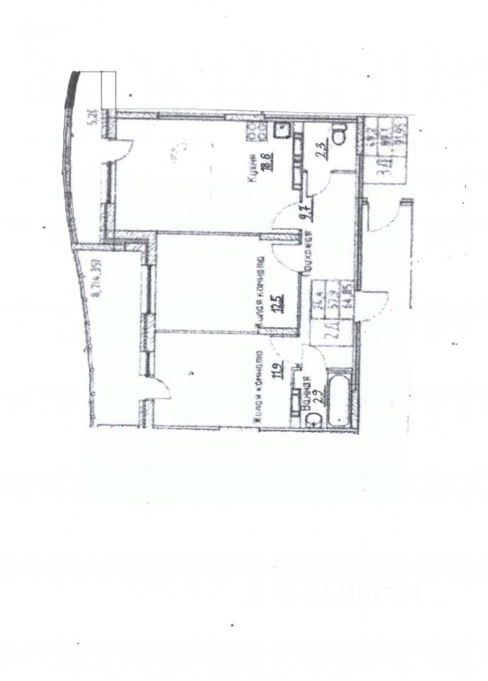 Комнаты раздельные- 12.5 и 11.9 кв.м. Из комнаты 11.9. кв.м. есть выход на просторную лоджию - 4.3. кв.м.