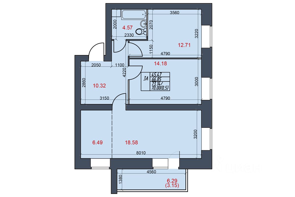 Продаётся 2-комнатная квартира в строящемся доме (Символ), срок сдачи: III-кв. 2026, общей площадью 70 кв.м., на 8 этаже.