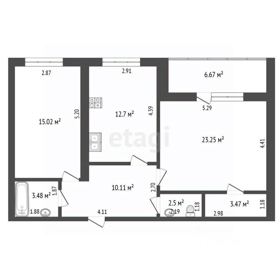 Очень уютная и светлая квартира с идеальными характеристиками: общая площадь - 70,4 кв.м, 2 комнаты квадратной формы (15 и 23,25 кв.м), большой коридор и просторная кухня (12.7 кв.м) - мечта любой хозяйки. Вам обязательно понравится продуманная и удобная планировка квартиры. Также есть отдельная гардеробная, которая сэкономит пространство в квартире и позволит удобно разместить вещи. Санузел раздельный. Еще один плюс в том, что есть большая застекленная лоджия, которая сможет стать отличным местом для релакса после тяжелого трудового дня.
