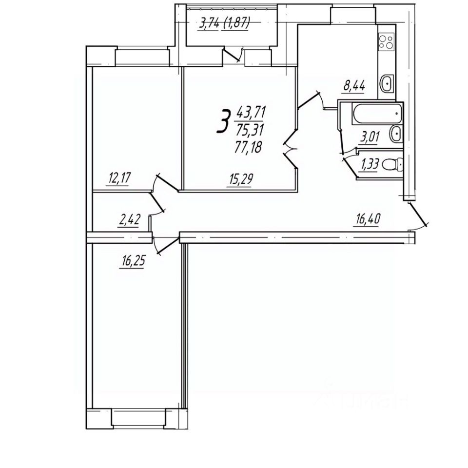 77,18 м²