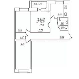 Общая площадь77,18 м²