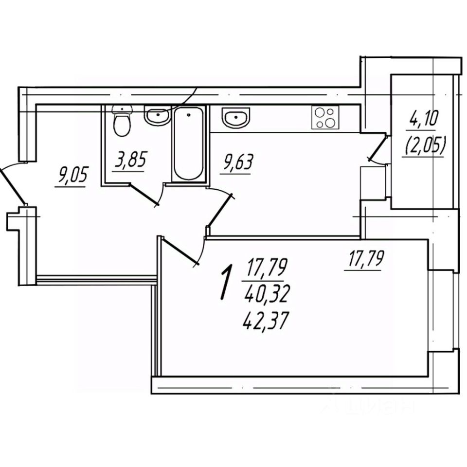 Общая площадь42,37 м²