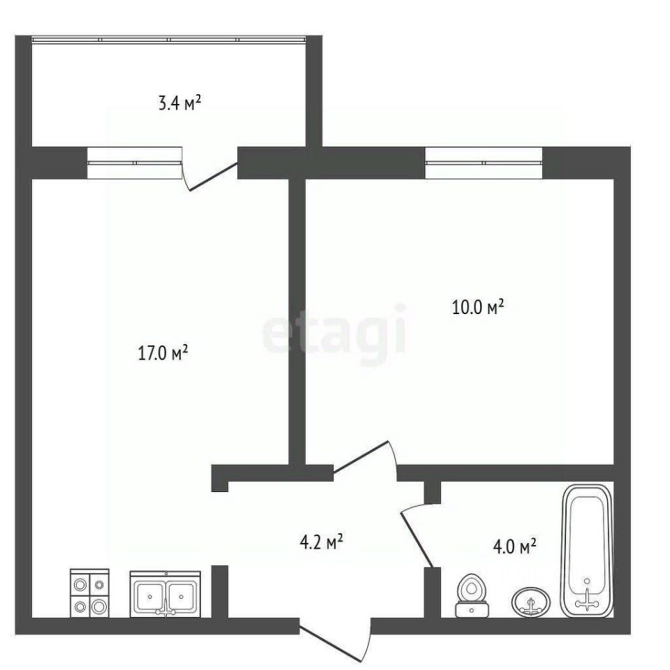 * Площадь: Общая 36,4 кв.м / Жилая 10,4 кв.м / Кухня 17 кв.м.