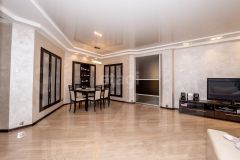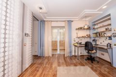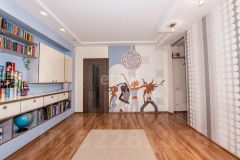 Общая зона - это шикарная кухня-гостиная порядка 60 кв. м. Мечта любой хозяйки, да и к тому же ещё и с камином. И вторая часть квартиры - это детские комнаты 24,7 кв.м. и 17,8 кв.м. со своим санузлом, гардеробной и лоджий с французским остеклением, благодаря которому в комнате ещё больше света.