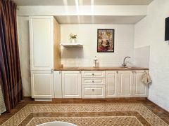 Во всей квартире выполнен качественный косметический ремонт, стены отделаны декоративной штукатуркой. В ванной комнате установлены красивые панели. Продавец готов оставить часть мебели, включая кухонный гарнитур, встроенный холодильник, варочную панель, вытяжку, шкаф и диван.