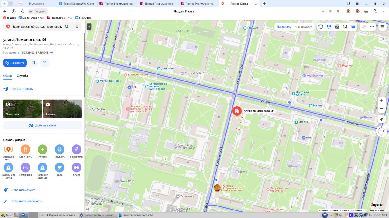 Квартира, площадью 55,3 кв.м., кадастровый номер 35:21:0401016:1371, расположенная по адресу: Вологодская область, г. Череповец, ул. Ломоносова, д.34,кв 77 1 Штука (шт)