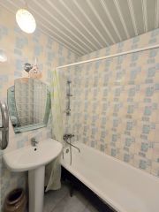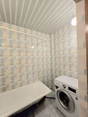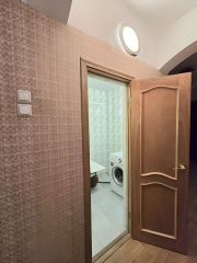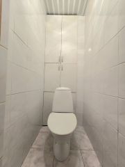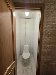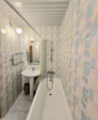 Стены выровнены, трубы поменяны, счетчики установлены, большие раздельные туалет и ванная в кафеле.