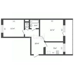 Просторный коридор позволяет удобно организовать систему хранения, а уютная кухня является комфортной зоной для приготовления и приема пищи.