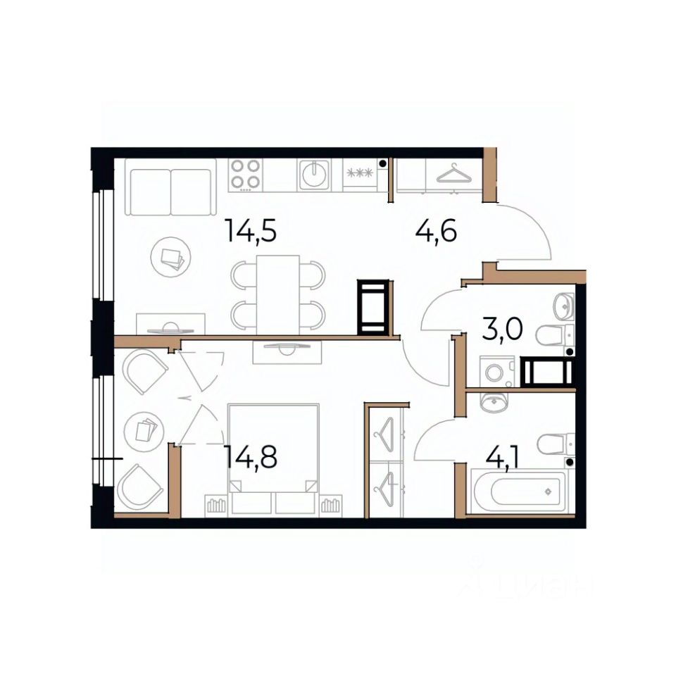 Жилая площадь14,8 м²