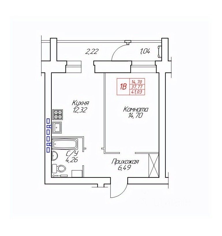 Общая площадь41,3 м²