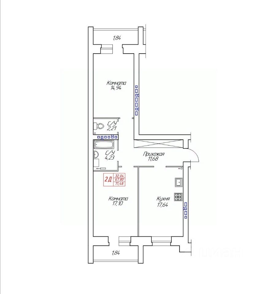 Продаётся 2-комнатная квартира в сданном доме (Устюженская улица, 14), срок сдачи: I-кв. 2025, общей площадью 71.48 кв.м., на 1 этаже. Пространство новой жизни! Квартиры с отделкой в кирпиче от надежного застройщика, экологически чистый район, дом удален от основных дорог, но в то же время, до центра города можно добраться за 10 минут!