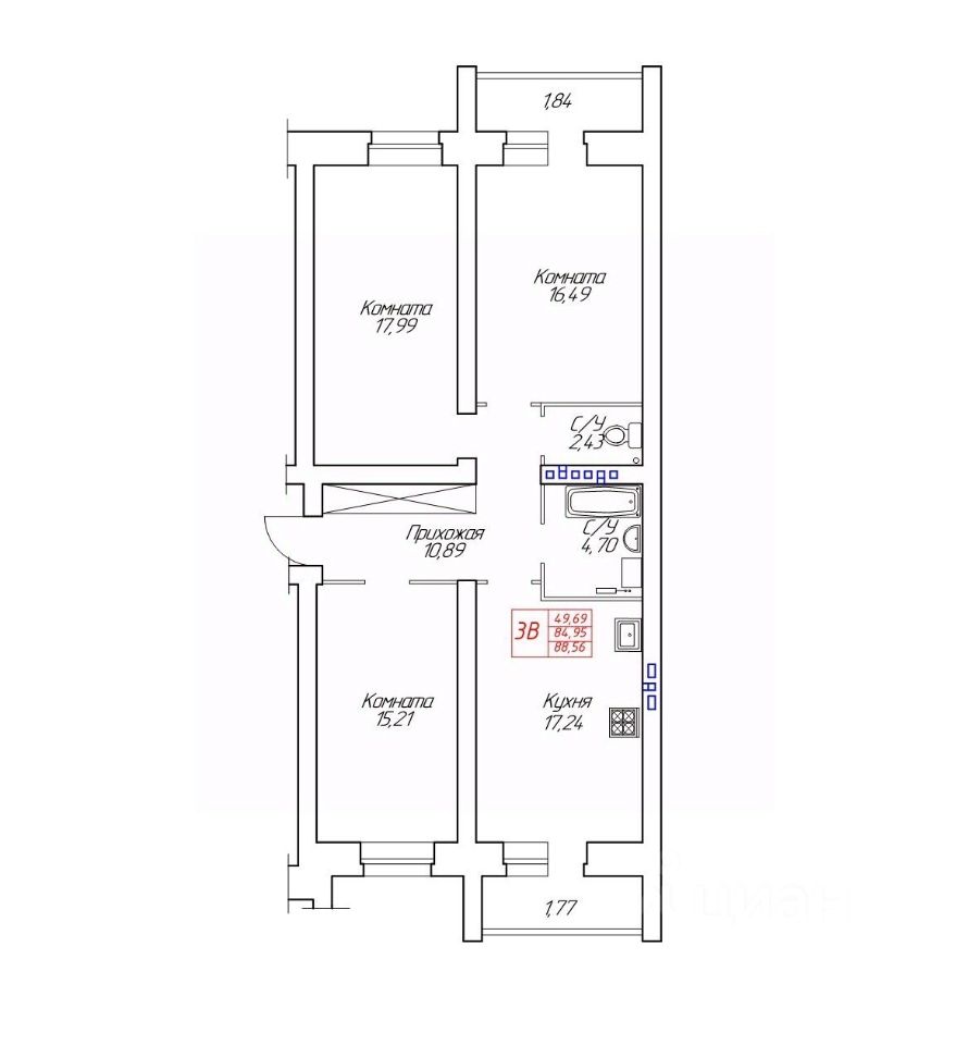 Продаётся 2-комнатная квартира в сданном доме (Устюженская улица, 14), срок сдачи: I-кв. 2025, общей площадью 88.56 кв.м., на 1 этаже. Пространство новой жизни! Квартиры с отделкой в кирпиче от надежного застройщика, экологически чистый район, дом удален от основных дорог, но в то же время, до центра города можно добраться за 10 минут!
