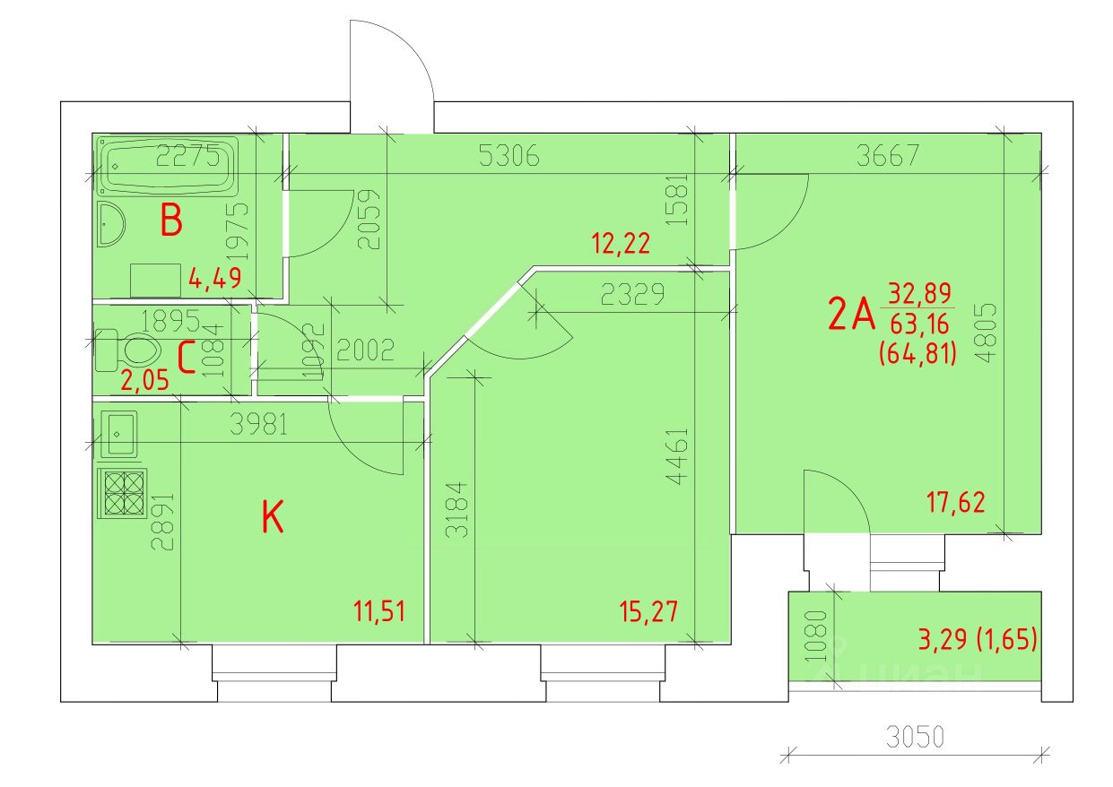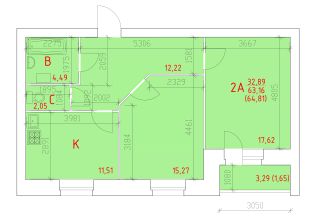 Продаётся 2-комнатная квартира в строящемся доме (Дом 23 - 1 этап), срок сдачи: II-кв. 2026, общей площадью 64.81 кв.м., на 11 этаже.