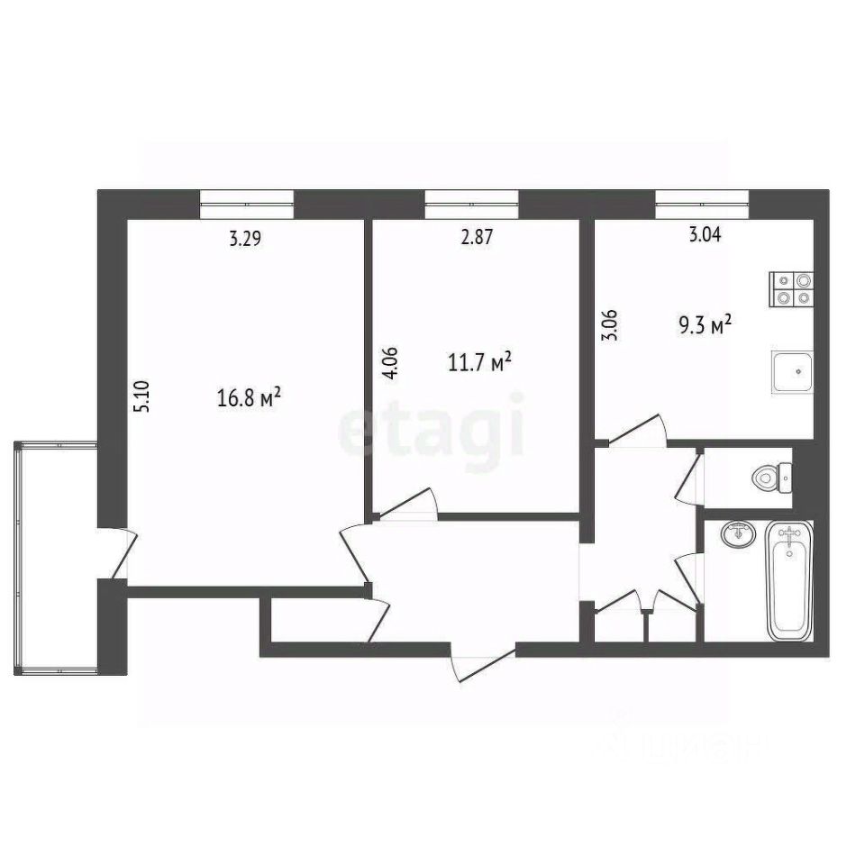 Просторная комната 16,8 м2 с выходом на застекленный балкон. Кухня 9,3 м2, правильной квадратной формы, достаточно большая для приема гостей - мечта любой хозяйки. Ванная комната и туалет раздельные. Сделан косметический ремонт, можно заехать и жить.
