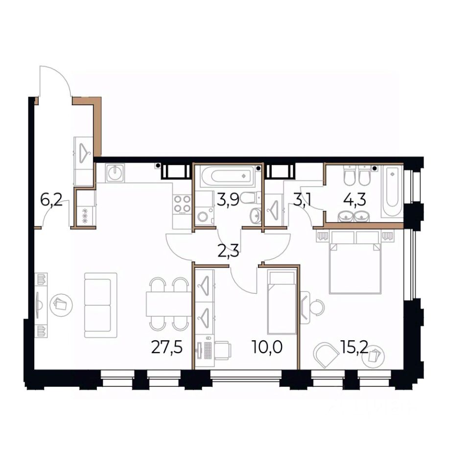 Площадь кухни27,5 м²