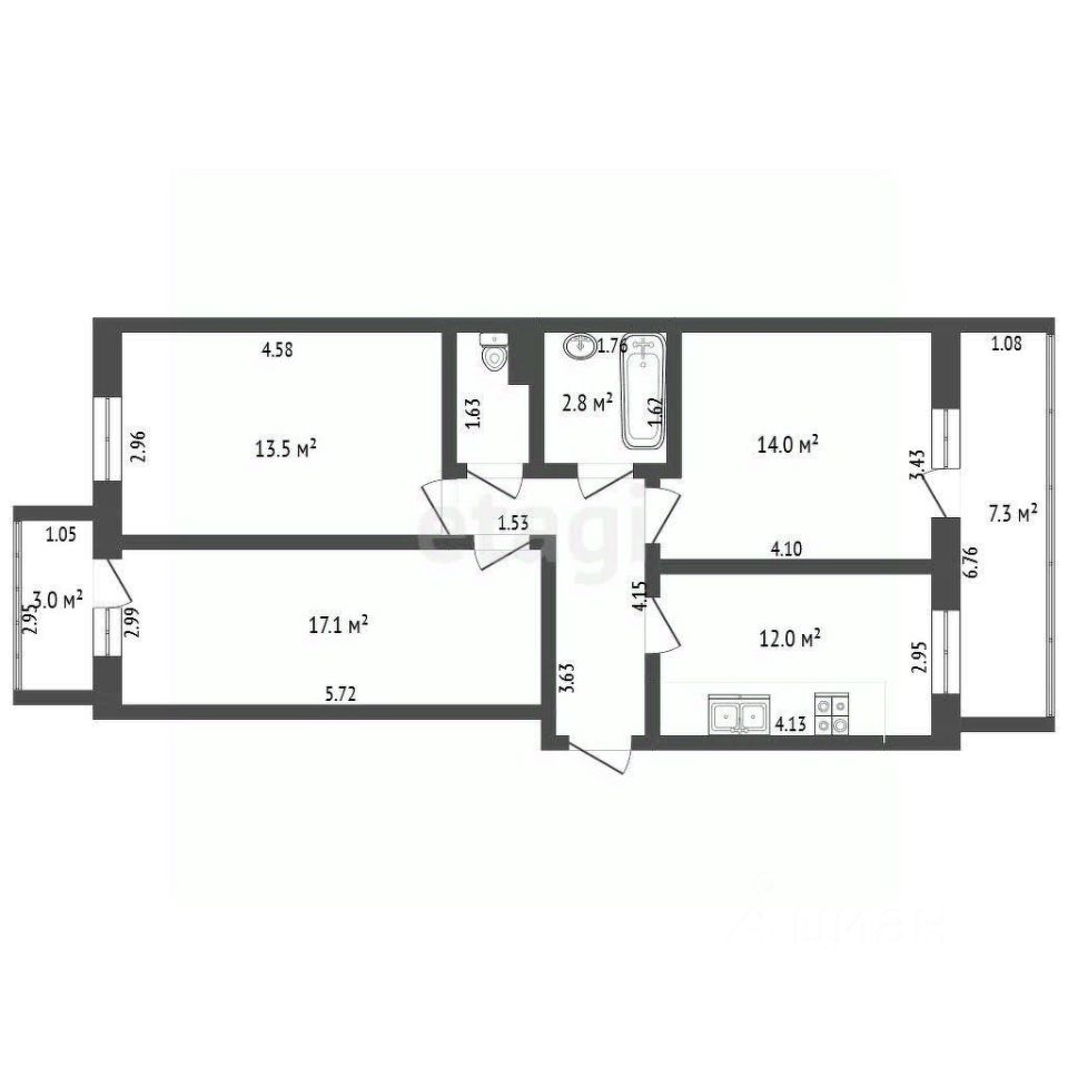 Четкая и удобная планировка включает три изолированные комнаты, каждая из которых станет личным уголком для члена вашей семьи. Большие окна дарят ощущение простора и наполняют интерьер естественным светом, а две уютные застеклённые лоджии (6 м² и 3 м²) — это ценное дополнение. Они легко превратятся в кабинет для работы, зону для чаепитий с видом на город или в спокойное место для отдыха в одиночестве.