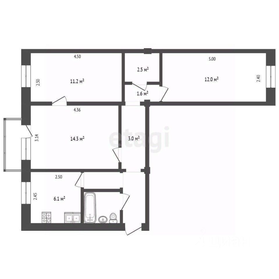 Отличное предложение как для сдачи в аренду, так и для постоянного проживания. Три отдельные комнаты соединены коридором, в котором находится встроенная просторная кладовка.