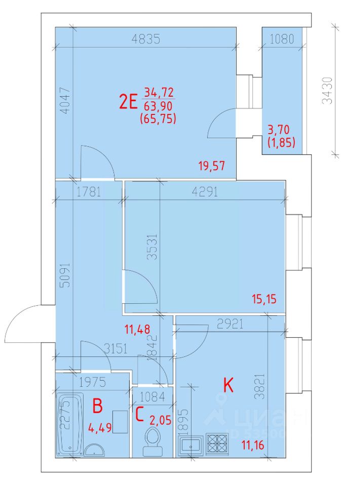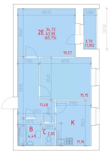 Продаётся 2-комнатная квартира в строящемся доме (Дом 23 - 1 этап), срок сдачи: II-кв. 2026, общей площадью 65.75 кв.м., на 9 этаже.