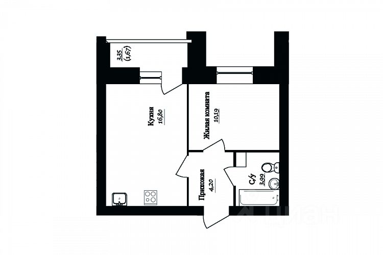 Продаётся 1-комнатная квартира в строящемся доме (Дом 2А, секции 1,2 (Рыбинская, 33В)), срок сдачи: III-кв. 2026, общей площадью 38.53 кв.м., на 10 этаже. Расположение