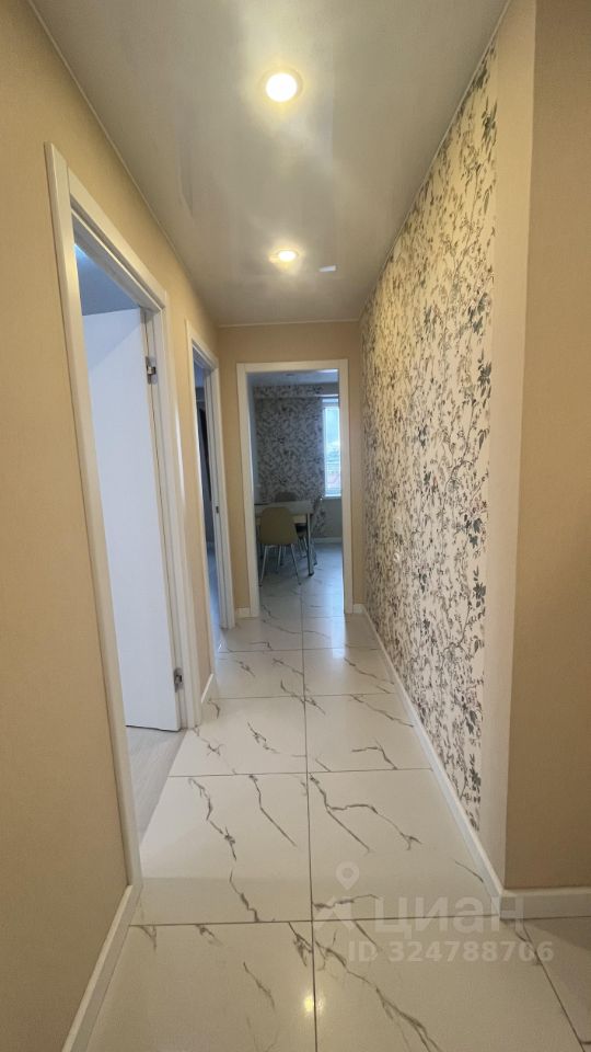 Отделка: Во всех помещениях (коридор, кухня, ванная, лоджия) уложен практичный керамогранит. Установлены стильные натяжные потолки.