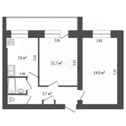 Интерьер представляет собой чистый холст для реализации ваших творческих идей благодаря предварительно проведённым работам по подготовке помещения к ремонту: демонтирован деревянный пол, убрана старая плитка в ванной комнате, пластиковое остекление лоджии.