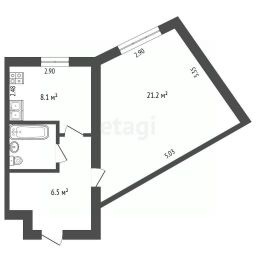 Общая площадь квартиры 39,1 м2, комната S-21,2 м.2,
