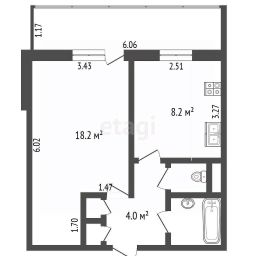 - Функциональная кухня: 8,2 м² с готовым кухонным гарнитуром, где вы сможете готовить любимые блюда без дополнительных вложений.