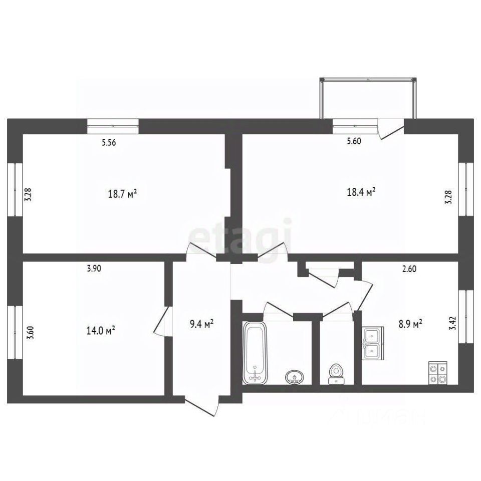 - Количество комнат: 3 изолированные комнаты правильной формы 14 кв.м., 18,7 и 18,4 кв.м. с выходом на балкон - удобно для планирования мебели и декора.