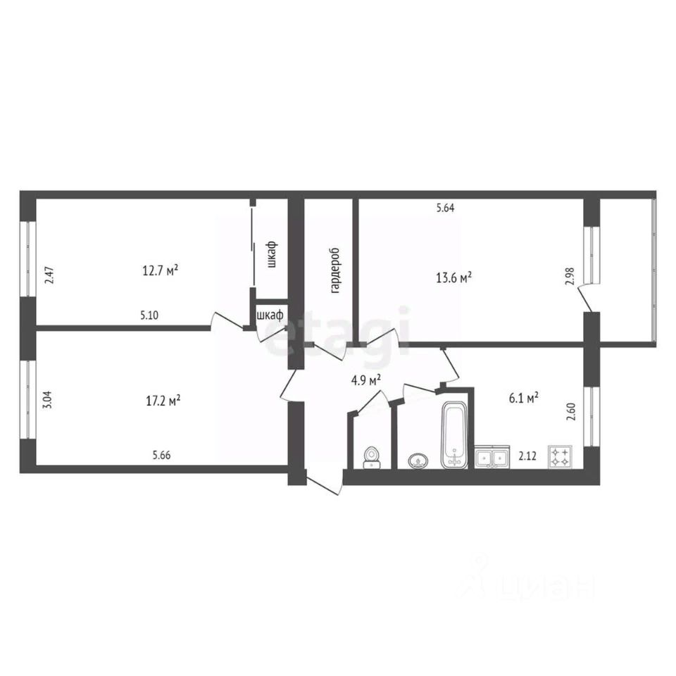 Продаётся просторная 3-комнатная квартира, идеально подходящая для ремонта по вашему вкусу. В квартире площадью 62,2 м2 комфортно разместится большая семья.