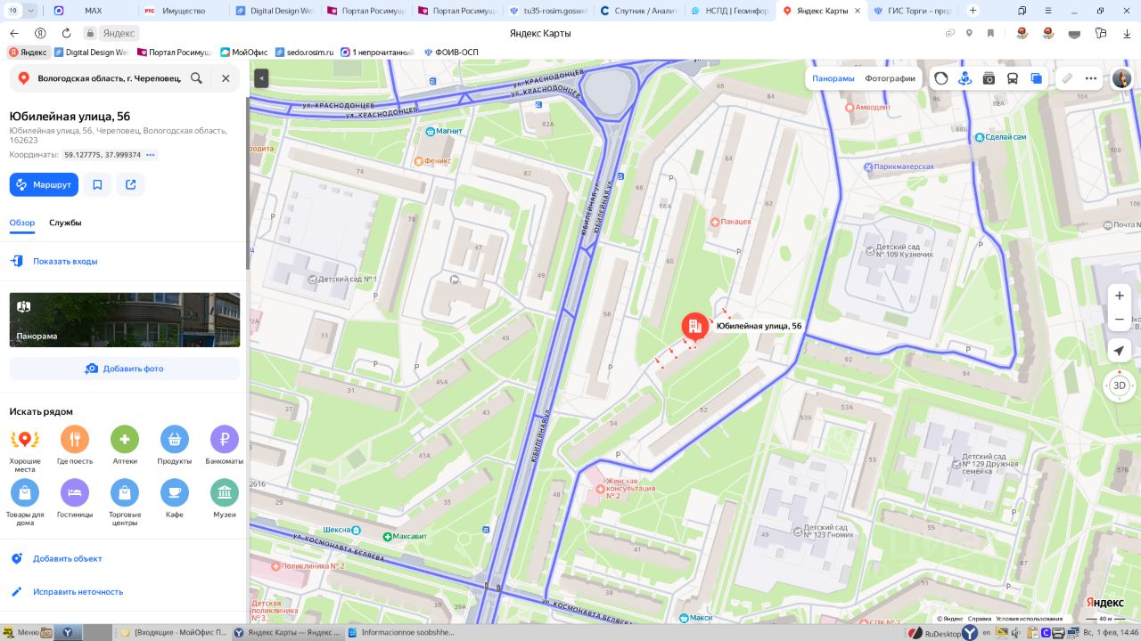 Квартира, площадью 28,1 кв.м., кадастровый номер 35:21:0203007:4127, расположенная по адресу: Вологодская область, г. Череповец, ул. Юбилейная, д.56, кв. 47 1 Штука (шт)