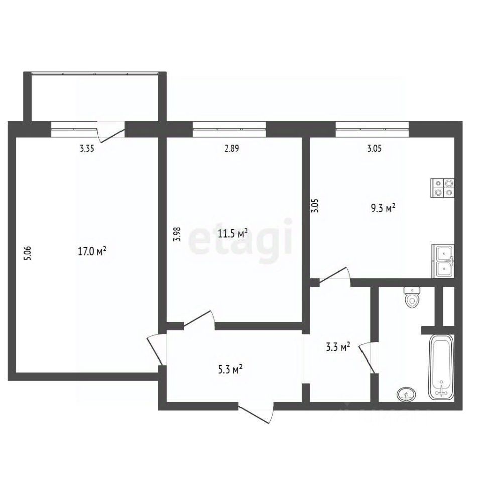 Комнаты раздельные, из большой выход на застекленный балкон. Просторная прихожая, кухня площадью 9,3 м2 правильной квадратной формы - удобно для расположения мебели и дальнейших перестановок. Санузел совмещен.