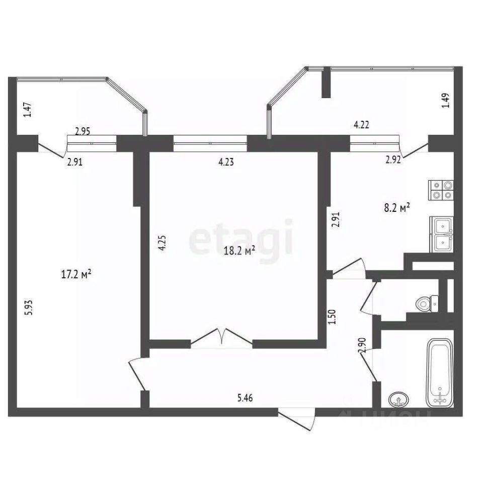 Просторная двухкомнатная квартира в современном монолитно-кирпичном доме предлагает рациональную планировку с изолированными комнатами и двумя балконами. Основной балкон с панорамным остеклением интегрирован в кухню-гостиную, создавая дополнительное светлое пространство для отдыха. Второй балкон примыкает к спальне.