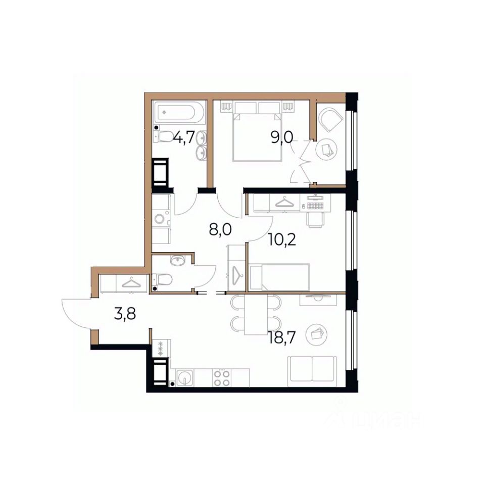 Площадь кухни18,7 м²