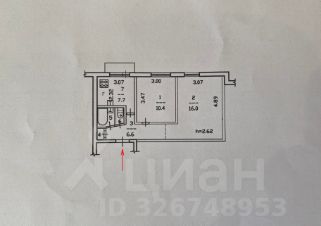 В продаже 2-комнатная квартира общей площадью 44,5 кв.м., расположенная на 6 этаже 9 этажного панельного дома.