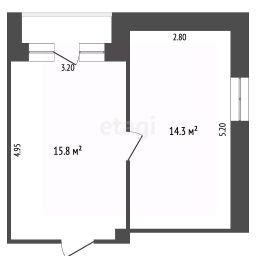 2 комнаты правильной формы 15,8 кв.м, 14,3 кв.м. с выходом на балкон - удобно для планирования мебели и декора.