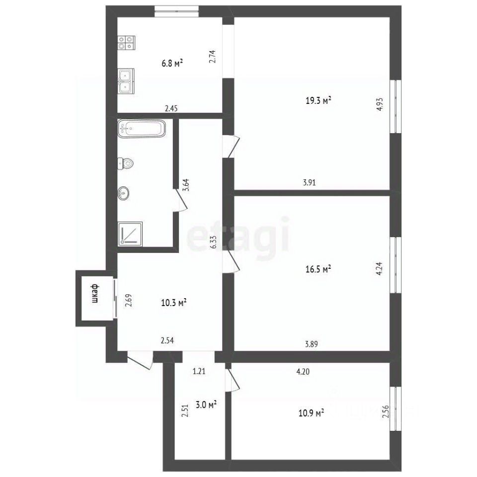 Продается трехкомнатная квартира площадью 74 кв. м на первом этаже кирпичного дома в Череповце, на ул. Карла Маркса, 72а.