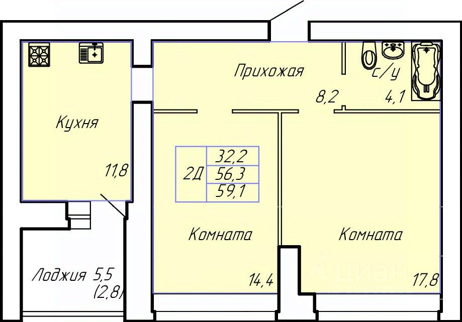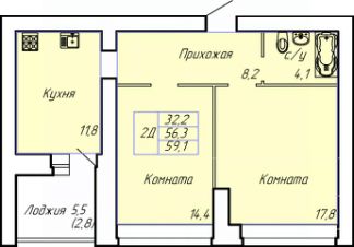 Общая площадь59,1 м²