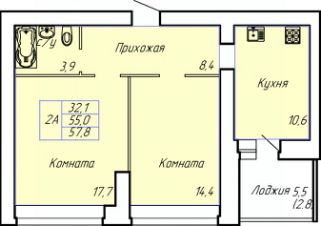 Продаётся 2-комнатная квартира в строящемся доме (1 этап), срок сдачи: IV-кв. 2027, общей площадью 57.8 кв.м., на 8 этаже.