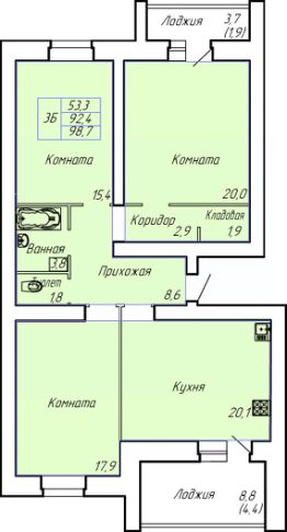 Общая площадь98,7 м²