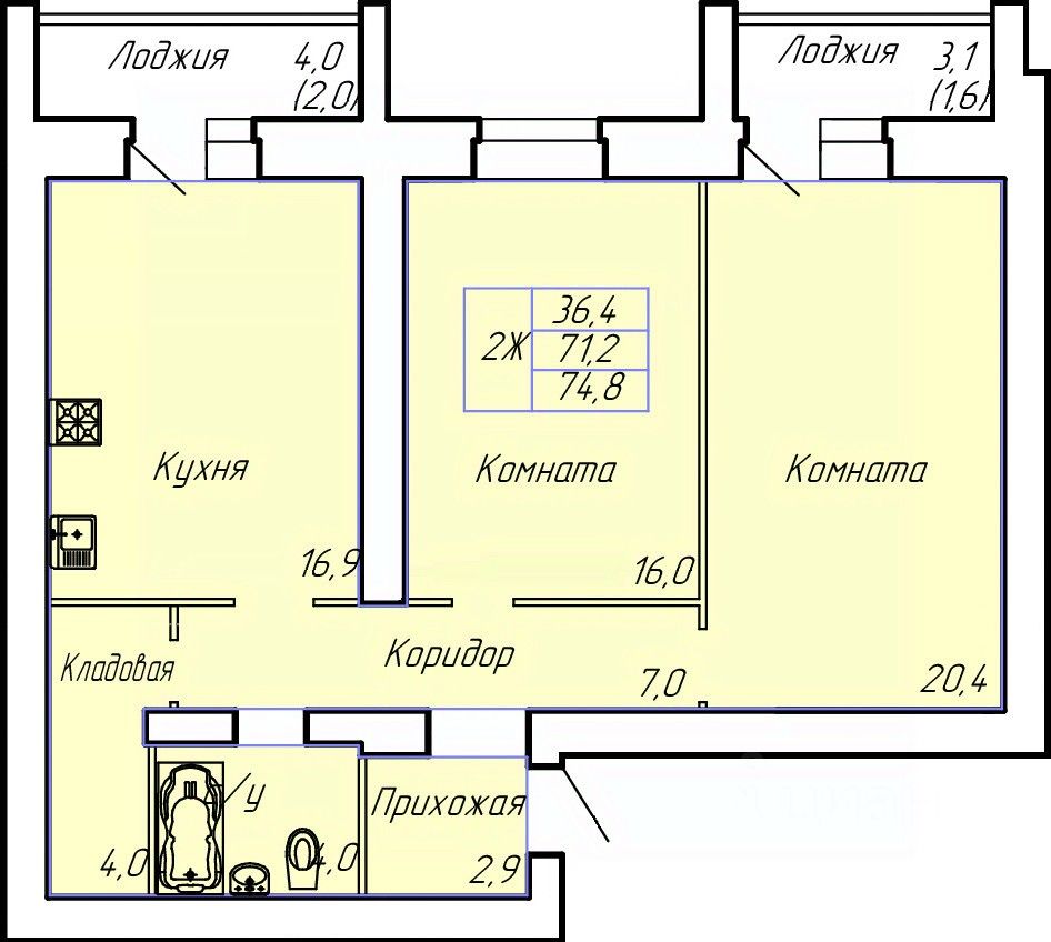 Общая площадь74,8 м²