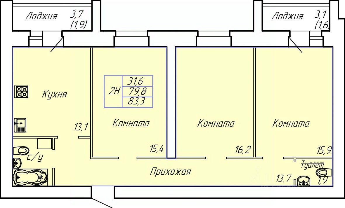 Общая площадь83,3 м²