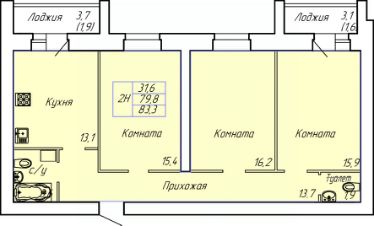 Продаётся 3-комнатная квартира в строящемся доме (1 этап), срок сдачи: IV-кв. 2027, общей площадью 83.3 кв.м., на 6 этаже.