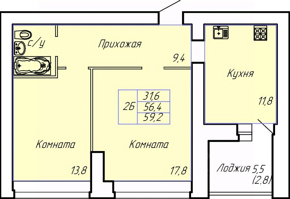 Продаётся 2-комнатная квартира в строящемся доме (1 этап), срок сдачи: IV-кв. 2027, общей площадью 59.2 кв.м., на 6 этаже.