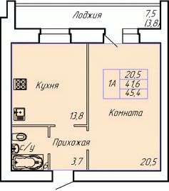 Общая площадь45,4 м²