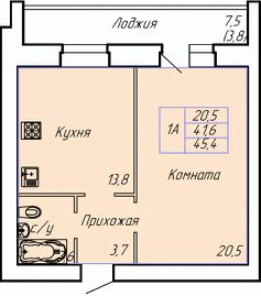 Продаётся 1-комнатная квартира в строящемся доме (1 этап), срок сдачи: IV-кв. 2027, общей площадью 45.4 кв.м., на 2 этаже.