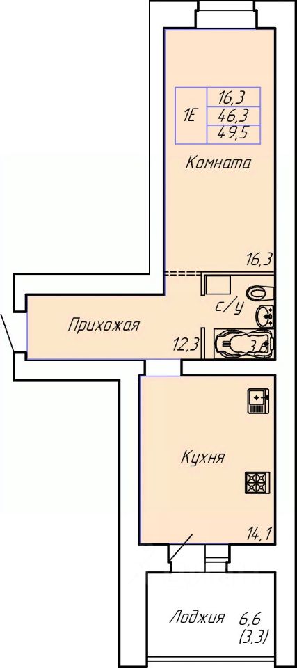 Продаётся 2-комнатная квартира в строящемся доме (1 этап), срок сдачи: IV-кв. 2027, общей площадью 49.5 кв.м., на 4 этаже.