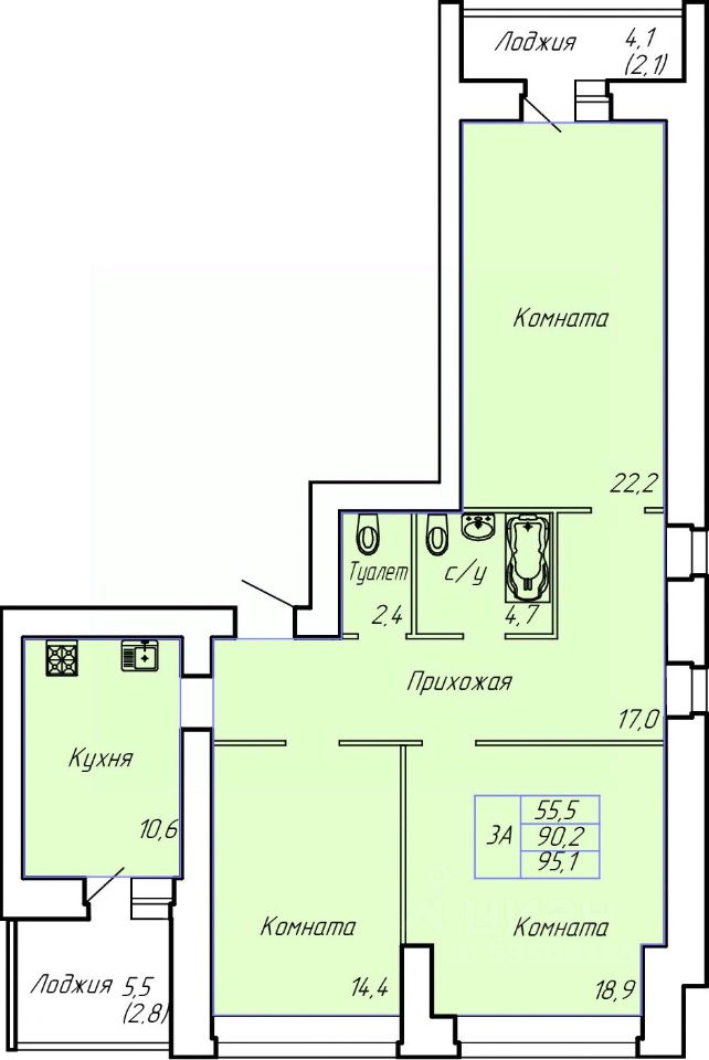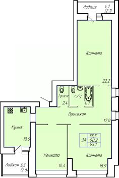 Общая площадь95,1 м²