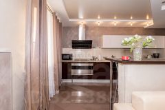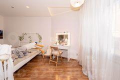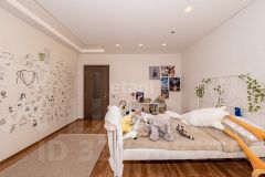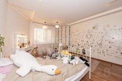 Общая зона - это шикарная кухня-гостиная порядка 60 кв. м. Мечта любой хозяйки, да и к тому же ещё и с камином. И вторая часть квартиры - это детские комнаты 24,7 кв.м. и 17,8 кв.м. со своим санузлом, гардеробной и лоджий с французским остеклением, благодаря которому в комнате ещё больше света.